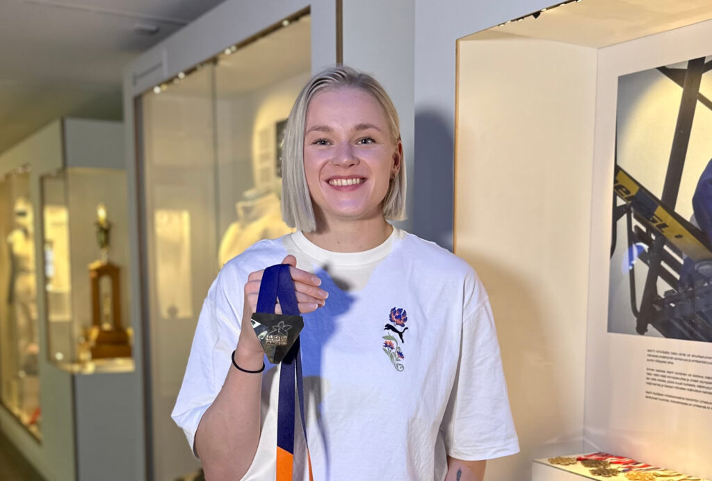 Wilma Murron EM-kultamitali on esillä TAHDON sankaruus-salin Paremmin-näyttelyssä.