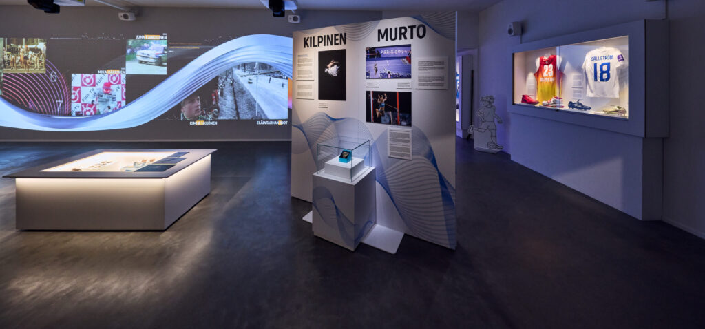 The new exhibition is enlivened by versatile and unique audiovisual contents that guide the visitor from story to another and emotion to another: from the Helsinki Olympic Games to the world of e-sports, from excitement through disappointment to joy for victory. The exhibition brings to you the heroes of Finnish success sports, such as track and field athletics, Formula One racing and ice hockey, as well as Finnish people who climb mountains, jump from airplanes or negotiate rapids and rails.